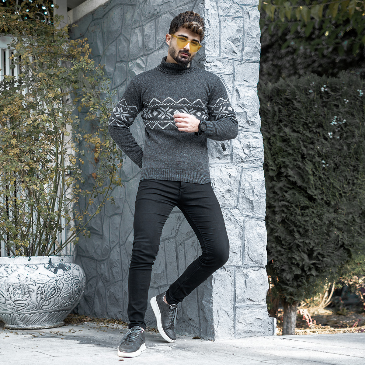 یقه اسکی مردانه ذغالی مدل Arja