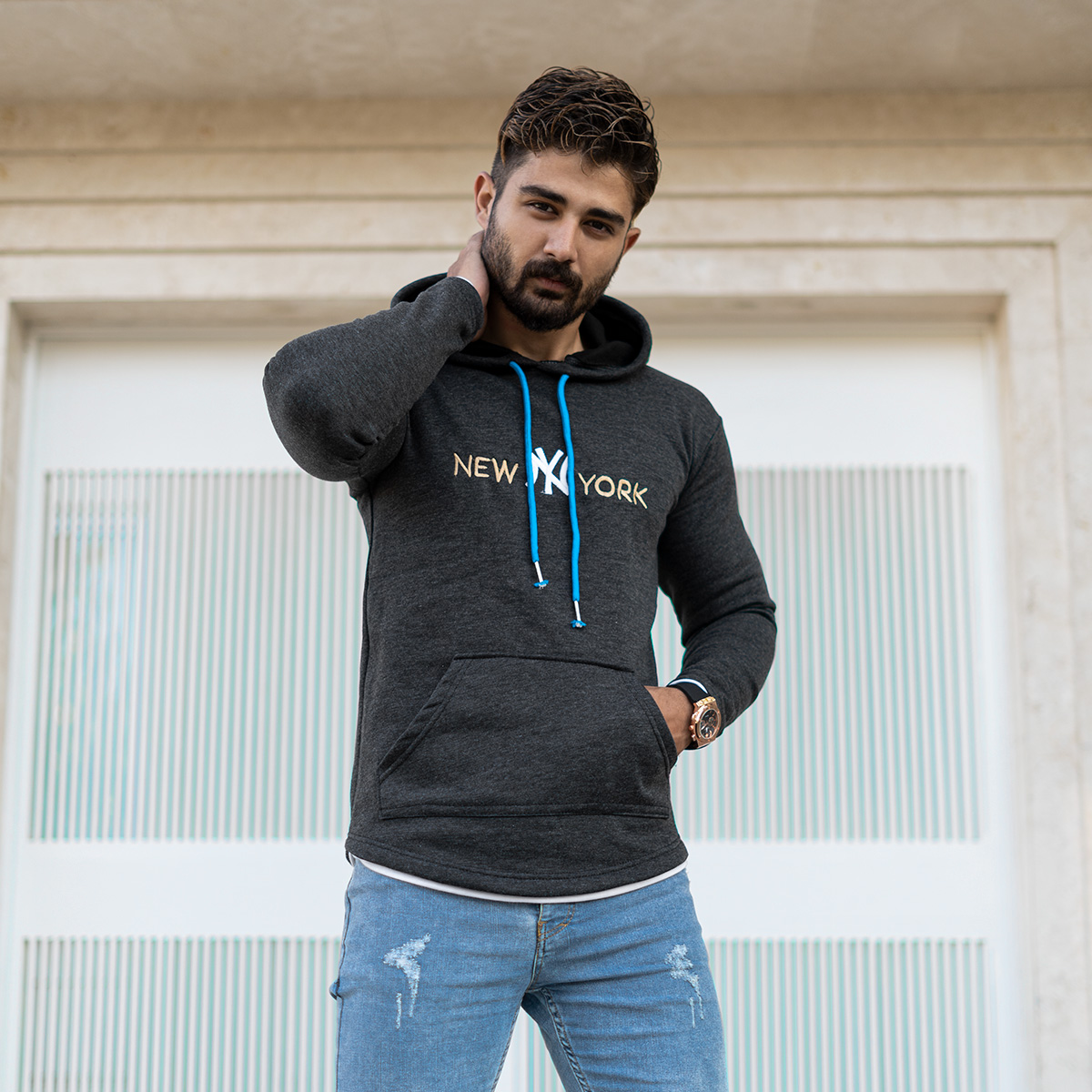 هودي مردانه مدل new york رنگ طوسي